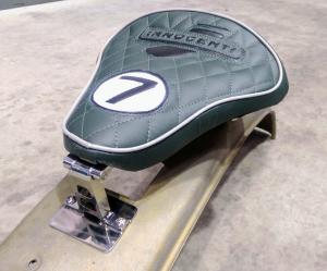 The seat has been made using the very best materials. The seat base is formed from 2.5mm mild steel and welded the same as the old bates style seats used to be, then a layer of 3/4" fully waterproof foam is added. The seat has 2 adjustable bolts at the front for a hinged type bracket and 2 bolts at the rear for springs to be mounted. The cover is a high quality leather which is finished off with a black trim giving a very clean looking high quality seat.