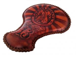 The seat cover is made from a high quality 3mm thick Veg hide Which is then hand tooled and dyed. The base is also covered in the same material and the edges are finished with a high quality oil tanned lace. The whole seat is then treated to a tough durable leather laquer.